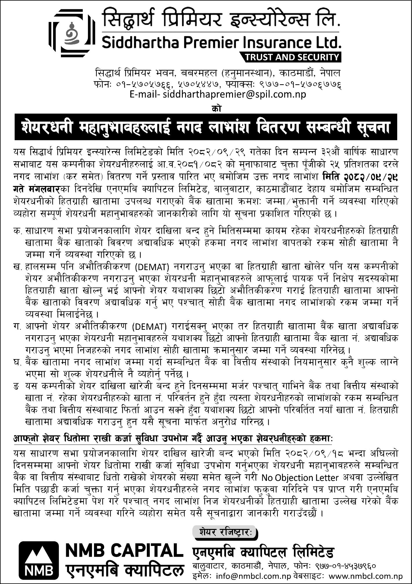 Siddhartha Insurance Limited & Premier Insurance Co. (Nepal) Limited have merged together and formed new insurance company named Siddhartha Premier Insurance Limited. Siddhartha Premier Insurance Limited have started joint operation from 1st of March 2023..
